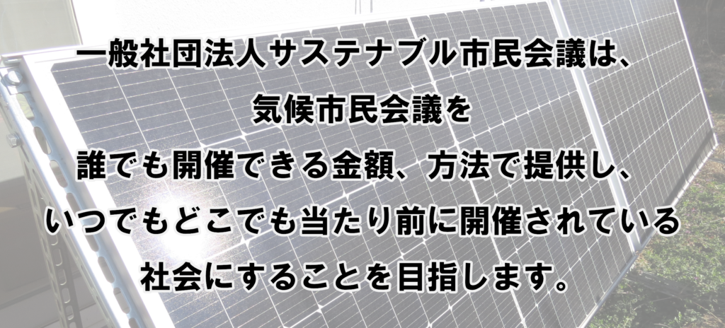 そこで、当法人では、気候市民会議を誰でも開催できる金額、方法で提供し、いつでもどこでも当たり前に開催されている社会にすることを目指していきます。